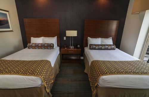 • Living Space: two double beds, coffee maker, complimentary coffee, temperature control, Wi-Fi, TV, telephone with voicemail, alarm clock
