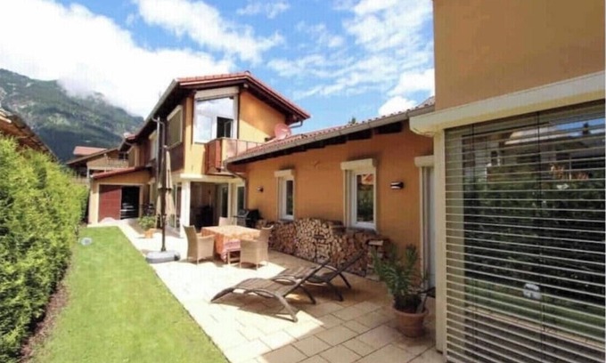 Fühlen Sie sich in dieser geräumigen (zwei miteinander verbundenen Häuser), hellen, modernen Villa mit 4 Schlafzimmern und 3 Badezimmern und Bergblick, die Platz für 8-10 Personen und 6 Autos bietet, wie zu Hause. Es gibt zwei Terrassen/Gärten, ein Wohnzimmer, ein Esszimmer und einen Fitnessraum, der für Cardio-, Funktions- und Krafttraining ausgestattet ist. Das Haus liegt zentral in einem der schönsten, ruhigsten und sichersten Viertel von Garmisch und ist dennoch nur einen kurzen Spaziergang von Skiliften, Wander-/Radwegen, dem Stadtzentrum, Restaurants, Geschäften, Lebensmittelgeschäften und dem Bahnhof/Busbahnhof entfernt.