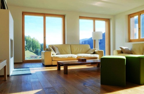110 m2. More information by the provider: The 4.5 room apartment was newly built in 2011 and is luxurious and comfortably furnished. The kitchen is opened to the dining and living room, the Bullhaup b3 kitchen leaves nothing to be desired when it comes to equipment. 3 double bed rooms (double and single beds), one of them equipped with a rain shower, toilet and sink. Another bathroom with bathtub with possibilty to shower and toilet. Living room with fireplace, high speed internet, WIFI, internet radio, MP2 and digital LED TV, as well as Apple tv. Bath and kitchen towels included. Flooring: wood