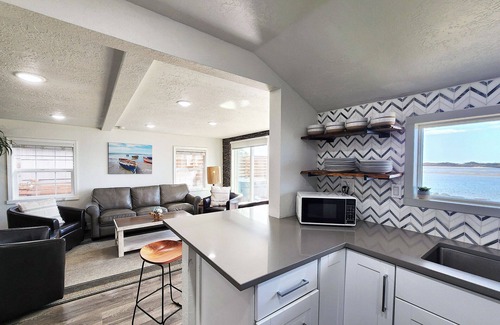 Spend time with the binoculars to watch the sea life right outside this home. The Retreat has an open-concept main floor with plenty of comfy places to relax and watch the tides of the bay. With sliding doors across the water facing side of the home, there are fantastic views from the deck and the living room! The kitchen has everything you need to prepare meals during your stay. The deck off the living room expands the living space so you can grill up a great dinner on the deck or relax and enjoy your favorite beverage and the view. Everyone will love to gather at the beautiful dining table and hang out in the living room watching a favorite sporting event. With the addition of the studio next door, you will have plenty of space for family and friends. When staying in the studio, we ask that no dogs be allowed in this space.