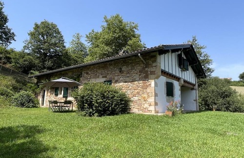 ALTZUARTE BERRIA is a beautiful Basque house, located on an active farm (horses) 1.2km from the town of Sare. You will enjoy a relaxing setting and a large private garden of 3000m2. The cottage is laid out on 2 levels. On the ground floor : - a large day room with equipped kitchen area (induction hob, oven, microwave, dishwasher, fridge-freezer), living room and lounge area with TV and insert fireplace - a bedroom with 1 140 cm bed with adjoining bathroom (shower and bath) - a toilet Upstairs : - a bedroom with 1 140 bed - two bedrooms with 1 bed 90 each - a bathroom - a toilet A 40m2 garage that can accommodate 2 cars or bicycles is at your disposal. You will also find a washing machine and a freezer. For your comfort, the bed is made on arrival, towels and household linen are provided, aerothermal heating is included. Wood included. Wifi internet connection. You can take your meals outside in the garden equipped with garden furniture, plancha and parasol on the south side or relax under the orio on the east side. Private parking. You will stay close to hiking trails (GR10 at 100m, La Rhune, etc.), 15km from Espelette and the beaches of St Jean-de-Luz, 11km from Lake St Pée-sur-Nivelle…