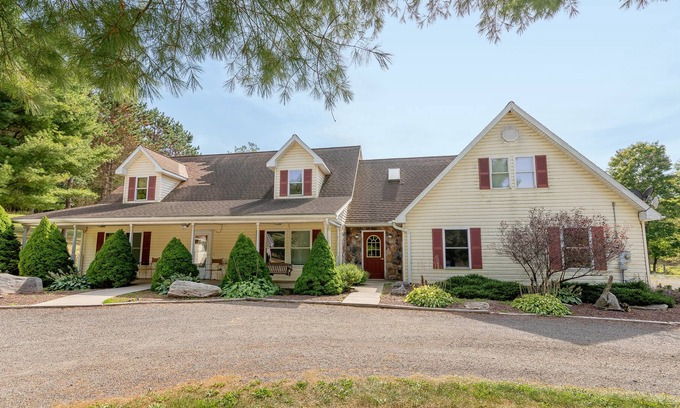Located off the beaten path just minutes to Deep Creek Lake, Alvie House offers a great escape from the daily grind and allows you to get some much needed rest and relaxation. Between the 2 levels of this stunning country home, there’s plenty of room for everyone. With a game room, loft, family room, and in-law suite, this home provides multiple living spaces and will allow large groups to separate, as well as come together in the spacious game room and large country kitchen/dining area. The attractive country décor will make you feel welcome and instantly at ease. Perfect for family reunions, weddings, or corporate retreats. Great space for gathering family and friends. Enjoy the country views and Bear Creek stream running through the 14 acres. Just take a short drive down the road and you'll be met with all the excitement Deep Creek Lake has to offer; the four season Wisp Resort, local restaurants, and multiple state parks.