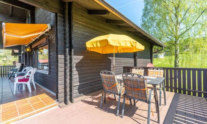 4-room apartment 90 m2 on 2 levels, on the upper floor. Cosy and wooden furniture furnishings: living room 35 m2 with satellite TV (flat screen). Exit to the balcony. 1 room 13 m2 with 1 double bed (180 cm, length 200 cm). 1 room 9 m2 with 1 x 2 bunk beds (90 cm, length 190 cm). Open kitchen 9 m2 (oven, dishwasher, 4 ceramic glass hob hotplates, toaster, kettle, microwave, electric coffee machine) with dining table. Shower/WC. Top floor: 1 room 15 m2, with sloping ceilings with 1 double bed (180 cm, length 190 cm). Gas heating. Large balcony 20 m2. Balcony furniture, deck chairs (1). Beautiful view of the mountains. Facilities: washing machine. Internet (WiFi, free). Please note: non-smokers only. Maximum 2 pets/ dogs allowed. Private entrance, smoke alarm. Balcony partly covered. Lake 150 m.