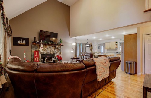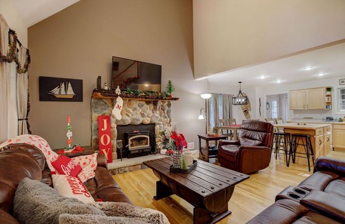 Our home is two floors with 3 bedrooms, 2.5 baths and about 1,525 square feet of living space. It is perfect for one or two families and sleeps 8-10 comfortably in beds. Check in is at 4pm and check out is at 10am. Amazing Acorn is fully equipped, and cabinets are completely stocked so you can just pack your bags and visit. We have a large Smart TV in the family room, super reliable Wi-Fi powered by 200M High Speed Internet, home phone and cable TV services all protected by an automatic 22kw Generac generator. We provide sheets, blankets, bath towels, new bar of DOVE soap in each shower, washer, dryer, laundry detergent, Weber 4-burner gas grill on our paver patio, dishes, pots, pans, toilet paper, paper towels, tissues, garbage bags, chopped firewood, traditional coffee maker and Keurig, extra Air Mattress, dish and hand soap. We even have items you might have forgotten such as spices, hand sanitizer, beach towels/chairs, condiments, pump for inflatables, life vests, snow sleds, etc. We can’t forget to mention our games and sport equipment such as “Kan Jam”, Corn hole, bocce ball, volleyball, small kids slide in the bunk bedroom, wiffleball, paddleball, badminton and 3 kayaks with paddles.