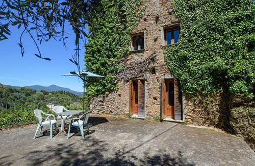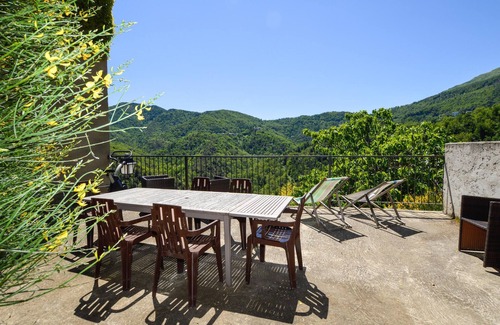 This inviting holiday apartment is part of a romantic 14th century stone house and offers you an idyllic retreat in the middle of Corsica's enchanting mountain landscape. Prepare your meals in the open-plan kitchen and plan your adventures over a glass of wine at the inviting dining table. Let the wonderful mountain air flow through the rooms and spend time together on a games evening.
