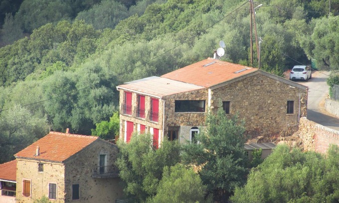 Welcome to this carefully restored ground floor flat, which welcomes you high above the valley in the charming mountain village of Partinello and has its origins in a wood smokehouse. Here, natural stone walls, round arches and vaulted ceilings create a cosy ambience, while large windows offer a wonderful view of the Mediterranean countryside. Conjure up delicious dishes in the modern kitchen and plan your adventures together in the bright living area.