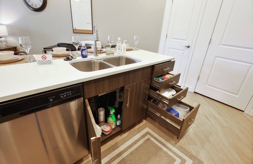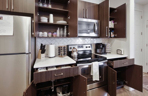 Kitchen: The fully-equipped kitchen boasts modern appliances, sleek cabinetry, and ample counter space. Whether you’re whipping up a quick breakfast or a gourmet dinner, you’ll find everything you need right at your fingertips. Don't forget to fuel up with our onsite coffee station!