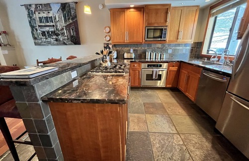 Totally remodeled 2 Bedroom 2.5 Bath Condo right next to Northstar Village. One of the most extensive remodels in all the Northstar original condo developments with a beautiful modern kitchen, washer dryer, steam shower, heated floors, BBQ, wood burning fireplace, beautiful cherry hardwood floors. Decks off both the Master Bedroom and Living Room which overlook the Aspen Grove behind the condo. Plus all the amenities one would expect from a top of the line condo including; a new high definition TCL/Roku Mini LED TV home entertainment system, surround sound, DVD/PS2 Docking Station, DVD library, high speed internet, printer, games in ottoman, gourmet kitchen with new GE Profile Cooktop, wine refrigerator, comfortable beds, wonderful linens and towels, washer dryer, August Keypad lock, etc. Take advantage of the Northstar Property Owners Association Club (NPOA) at the Village which includes: pools, hot tubs, workout room, massage, kids entertainment center, snack bar, etc. (check out the NPOA website for pictures and details - https://npoa.info.) Golf Course is just down the street.