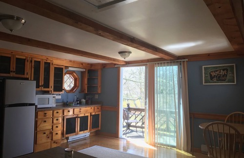 Studio garage apartment also available for lease at an additional fee. (SEASONAL). Queen sized bed, pull out queen sofa, flat screen TV, kitchenette and full bath with stand-up shower. Sleeps up to three (3). Studio will not be rented separately.