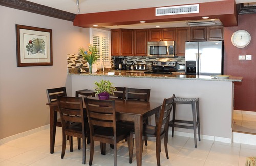 While vacationing in Grand Cayman, enjoy an exquisite panoramic view of the world famous Seven Mile Beach from the Lanai of Unit #32. From a distance, you can watch the cruise ships dock in Georgetown each morning and evenings can be spent gazing as the sun slowly sets over the magnificent Caribbean Sea. The entire unit was renovated a few years ago with beautiful granite, new modern bathrooms and all new furniture and beds. The condo is decorated in a tropical beach style with your comfort and relaxation in mind.
