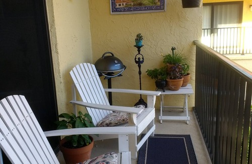 Gorgeous balcony with full pool and ocean view, George Forman grill, seating to look out over the heated, salt water pool and ocean. In living and bedrooms there are Roku boxes on all TV's. There are flat screen TV's in all bedrooms and living room.