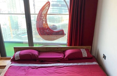 Some of the perks of staying in my comfortable flat just to name a few is the outdoor pool, the gorgeous garden landscape, the basketball and tennis court for you active travelers, theres also a supermarket in the building for even more convenience