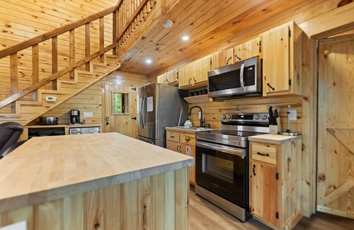 Cabin has fiber optic Wi-Fi and cable TV, Smart TV's, central HVAC, electric fireplace, washer/dryer, dishwasher, stainless steel appliances, refrigerator with automatic ice maker, and a DVD player. Please remember your account information for the Smart TV's so you can watch your favorite shows.