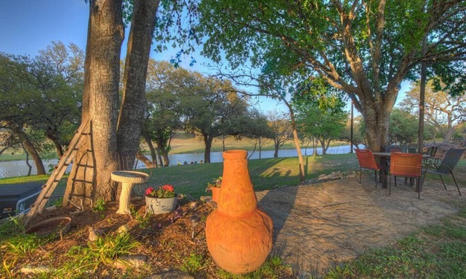 Discover the beauty of Blanco from this delightful 3-bedroom house. With 2 queen beds, a twin trundle, 1 full bed, and 1 full/twin bunk bed, our gorgeous property offers tremendous space for guests to relax and unwind. Enjoy the comforts of AC/heat, and WiFi throughout. The 2 bathrooms are equipped with hair dryers and showers with a bath tub in one bathroom. Additionally, there are 2 living rooms with 2 comfy spacious couches to accommodate 2 guest. You're sure to make fantastic memories with a stay at our place as the river makes a great place to enjoy a the morning and the evening just by looking at water all year around. We always have water here as it is also spring fed. Paddle boat, fish, wade, float, swim, as there are steps and a dock located by the river all at your own discretion when water is low of course. Another deck is above the hill and the porch yard seating allow viewing of river as well. Both living areas allow ample seating and tables for viewing TV.s in each room or tables for game play. Come make lifelong memories here.