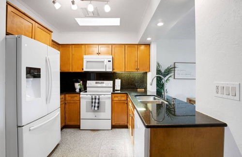 This tropical retreat is loaded with character and fun details! If you're looking for a charming home with the feel of a private tropical resort, this is the one. The amazing and massive heated pool & spa are the highlights of the home and are brand new with beautiful travertine for a luxury feel. The backyard oasis is complete with a new outdoor shower, plenty of outdoor seating & dining space, and a very quiet & private backyard surrounded by exotic tropical plants & trees. There is even a quaint courtyard with a fire pit for those chilly winter evenings. Pool & spa heat is available for a small separate fee - just ask!