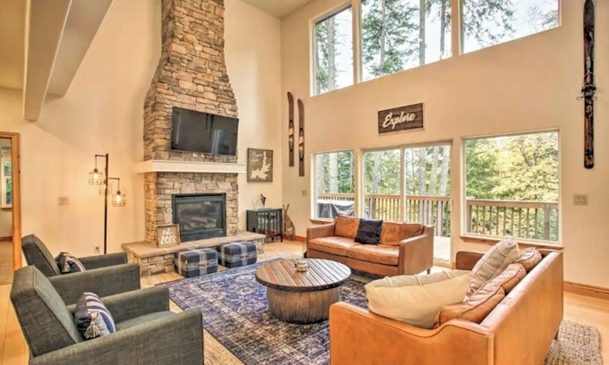 Escape to a luxurious mountain retreat in this spacious 5-bedroom, 3.5-bathroom home featuring a private movie room, expansive outdoor deck, and forest views that invite you to relax and unwind. Perfect for family gatherings or group getaways, the home offers a gourmet kitchen, multiple living spaces, and is just 3 minutes from the marina for your lake adventures. Note: 4x4 required in winter.