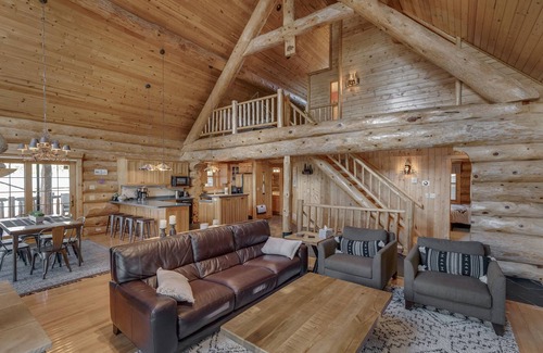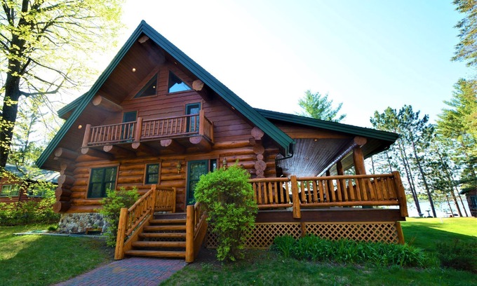 This one-of-a-kind log cabin is located just steps from beautiful Lower South Long Lake. With beautiful lake views, the main floor has an open floor plan with a full kitchen, dining area and living area with a stunning gas fireplace.