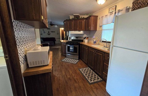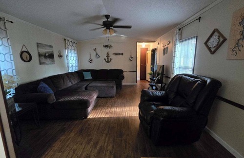 Located in the Wheatland/Galmey area, this mobile home on 1.2 acres is a dream. With a queen bed in each of the 2 bedrooms and a spacious living room with a sofa bed, guests will have plenty of space to relax. The large screened in porch has table and chairs to entertain the whole family in comfort, without the pesky bugs. Or just watch the deer and animals in the quiet by the creek. A two minute walk gets you to Pomme de Terre lake where you can cool off and play in the water. Or a ten minute drive to Lucas Oil Speedway to take in the races. Full equipped kitchen with plates, eating and cooking utensils, pots and pans. Flat screen TVs in living room and master bedroom. The property also offers AC and heating for a comfortable stay. Our place will help you feel at home in the Pomme de Terre area.