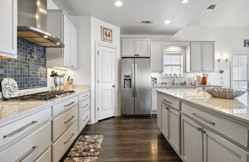This beautifully decorated, very spacious house is located on the Bay of St. Louis with a great porch facing the water where you can take in the beautiful sunsets. There is a private pier with swimming and boating access. It also has a pool on the waterfront with heat available for an additional fee. The house has 4 bedrooms and 4.5 bathrooms. The living, dining and kitchen areas all open to each other and very spacious, great for a large family! The fully stocked chef's kitchen has a 5-burner gas stovetop with a hooded vent, a double convection oven, large pantry, Quartzite countertops, and an island with barstools. The enormous dining/living/den across the rear of the house have 20 foot ceilings, with 2 large French door sets that open to the 2nd story covered porch overlooking the pool and the Bay. Between the living and dining area is a gas fireplace, providing a nice, relaxing ambiance on a cold evening. The space under the house is very big with a table and chairs as well as some rockers and loungers for sitting around the pool area. There is a storage shed that has a full bath as well as an extra refrigerator/freezer. Five bikes are provided to enjoy a nice ride through this beautiful, peaceful neighborhood. A ping pong table is also available for guests to use. There is a public boat launch about 5 minutes from the house. And the beautiful, white sandy beach is a very short car ride or bike ride for the adventurous!