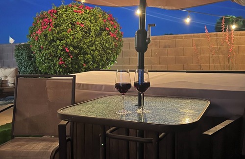 Escape to our stunning 3-bedroom vacation home in Chandler, where you'll be just a 15-minute drive from the Chandler Fashion Center, SanTan Village, and the thrilling Wild Horse Pass Motorsports Park. Dive into the refreshing pool or unwind in the soothing hot tub, all while enjoying the convenience of free WiFi and a smart TV. Indulge in home-cooked meals prepared in the fully stocked kitchen, complete with a stove, oven, refrigerator, grill, and all the necessary appliances and utensils. Relax in the comfortable living spaces, and take advantage of the in-home laundry facilities with a washing machine and dryer. Enjoy the great outdoors with the fire pit and outdoor furniture, or curl up with a good book from the selection provided. Whether you're seeking adventure or relaxation, this vacation home has everything you need for an unforgettable stay.
