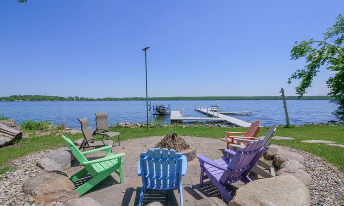 Come unwind at this exceptional property on the shores of Alexandria's premier Lake Ida. Enjoy the "cabin life" with all the amenities of home like 3 bedrooms, 3 baths, fully updated kitchen, quartz countertops, natural fireplace, 2 large decks, large screen porch with tv, level to water landscaped yard, and more! Lake Ida is one of the cleanest lakes in MN, and one of the best for fishing walleye, bass, northern, and crappie. Take advantage of time on the water with the Two paddle boards and paddle boat are included as well to explore the lake. Enjoy and warm bonfire and some smores at the paver fire pit, or peaceful evenings at the gas fire pit on deck overlooking the lake. This place has it all, including a Weber gas grill, 150ft of pristine sandy level lake shore, large dock with room for pontoon and two jet skis, and a level lot for yard games and fun with the kids. One king, one queen, two sets of bunks for the kids, plus extra area above garage with four separate single beds in the loft, two sleeper sofas, bathroom with shower kitchen with fridge sink and pizza maker great area for the kids or extra guest. Sleeps 12.