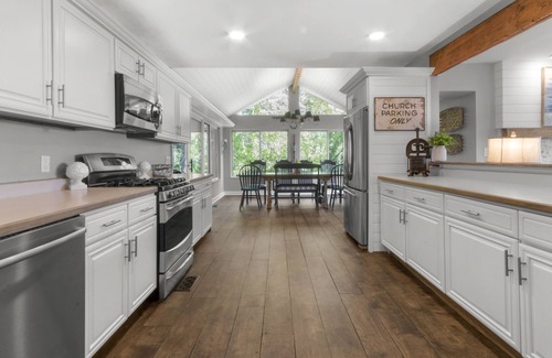 Renovated 7 bedroom, 4 bath, 3 level lake home perfect for multi-family and retreat bookings. Amenities include a large, heated in-ground pool, on-site parking for 12 cars, private lake parcel with 100 foot pier (kayaks, canoe, paddle boards included)