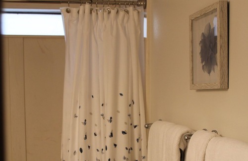 Bathroom located in the upstairs bedroom area: shower