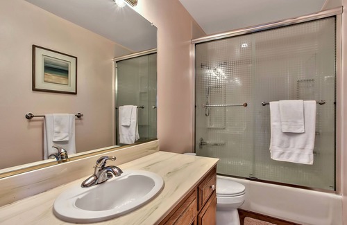Lakefront Retreat that sits right on the water's edge and showcases panoramic views of Lake Tahoe. A stunning river rock fireplace is the focal point of the open floor plan in the living/kitchen area. Sit by the fire, entertain Tahoe style and take in water and mountain views you can find nowhere else. Everywhere you look there are dazzling Tahoe views. Inside or outside you can relax Tahoe style - either on the open patio after a after a day on the lake or cozy up to the warm fireplace after a day on the slopes. Conveniently located near all the action but you wouldn't know it by the level of quiet and privacy enjoyed. Leave the car and walk to Lakeview Commons, Great restaurants and bars; SUP, bicycle and Kayak rentals. 2 BEDROOMS 1.5 BATHS