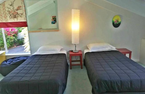 Three single beds upstairs, for a quiet retreat.A kitchenette, two TV's and even off street parking. The stairs is quite narrow if you have shaky knees, difficult to manage, no under ten's please.