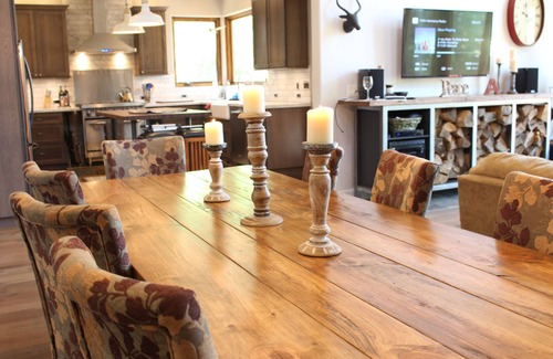 Beautiful home with a gorgeous view - located a short stroll (3 blocks) from downtown. This modern, yet rustic retreat is perfect for groups and families wanting to be in the action of town, but feel like they are isolated on a meadow far from civilization.