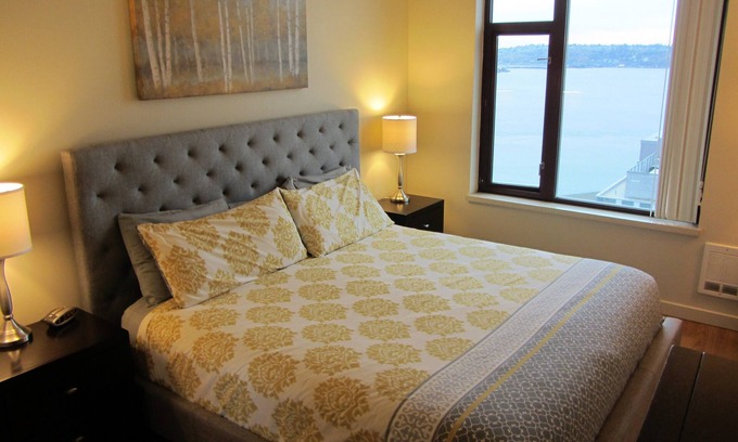 This 2 bedroom + den, 2 bath apartment (sleeping 6-8, but 6 adults max) will be your home sweet home-base during your stay. Whether in Seattle on business, to sight-see, or visiting family or friends, you will LOVE this apartment, the building amenities, and the location of Harbor Steps. Truly, nothing compares.