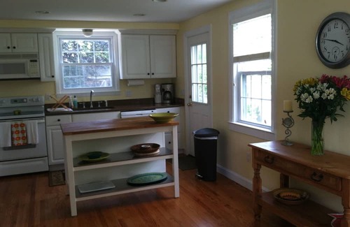 Lovely furnished Cape in quiet neighborhood. Expanded and renovated in 2012. The new addition to the house added a master bedroom with ensuite and bath upstairs and doubled the size of the original living room. Kitchen with granite counter-tops, nice flat, fully fenced in back yard with deck, patio furniture and grill area! SEE Further Details for Things To Do.