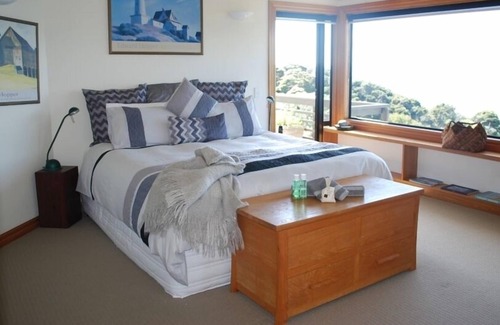 Stone wall construction, rimu timber joinery through-out, spacious sunny decks, and modern comfortable furnishings complete this quality holiday home.