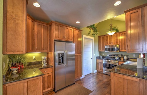 Manitou Getaway has all you need for a memorable stay. Featuring four bedrooms and three and half baths, the home accommodates 12 guests. A modern kitchen and two living spaces make this a great base camp for exploring all of the attractions in the Pike's Peak region.