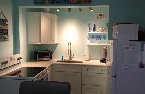 Located in the Heart of Beautiful Downtown Cocoa Beach !!! Only 15 min from Port Canaveral Cruise Terminal..!! Walk to a variety of 25 restaurants, stores, bars,and entertainment. Music at several locations within walking distance. Beautifully decorated, it is a 1 bedroom and 1 bath condo. Kitchen has a refrigerator, stove, microwave, dishes, glassware, silverware, Keurig coffee maker and pots and pans. Living room has a conversion sofa (full size), 40 in. TV, and free WIFI with a glass sliding door that looks out directly at the ocean.!!