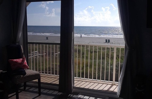Outside balcony with a direct view of the ocean and stairs take you to a private path to the beach. Beach chairs, beach towels, cooler, boogie boards and umbrella are there for your use. Extremely clean and comfortable unit.