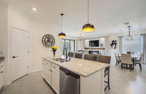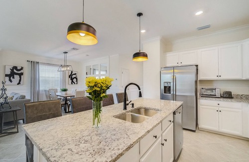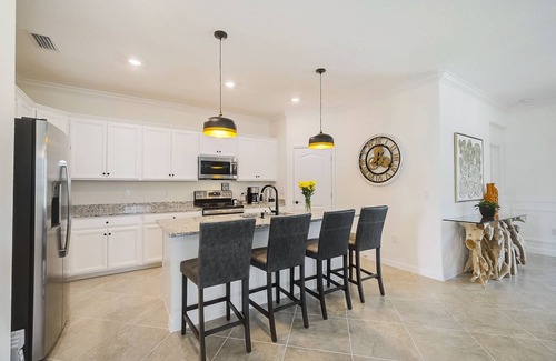 It is 4 bedroom, 3 bath, fully equipped kitchen with a cozy lanai overlooking natural pond and preserve with a beautiful nature all around. Every evening you can enjoy an amazing sunset with your loved one or your friends!