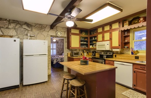 Absolutely perfect Riverfront for swimming, fishing, canoeing, kayaking, rope swinging, you name it, it is all at Pigeon Roost! 4 kayaks and paddles provided at Pigeon Roost for your enjoyment!! Excellent location, only 0.3 miles from downtown Hunt, TX. A main home and small apartment are perfect for your crew to enjoy days on the Guadalupe. The main home consist of 3 bedrooms and 3 bathrooms. On the main floor is a Full Kitchen, Living area with fireplace, enclosed patio with views of the river and Cypress trees, dining for 10, a Master Bedroom with a king sized bed and full Ensuite Bathroom, another bedroom with to twin beds and a full Ensuite bathroom as well. Attached to garage is a small apartment with two twin beds and a full bathroom. In the garage you will fins a grill, river tubes and a washer and dryer. Pigeon Roost is iconic Hunt and has a ton of local history. Camp La Junta is across the river from the home, so you might get lucky and hear some of their announcements and fun! Wake up and have coffee on the back patio or mosey down to the river, either way there is an outstanding view to relax and let the Guadalupe wash all your worries down river. Many fun things to do in the area, minutes from the home.. The iconic Hunt Store, Bridget's Basket, Southern Sky, Lost Maples and many others. Look to our guide in the home when you arrive. We look forward to hosting you! Please let us know if you have any questions!