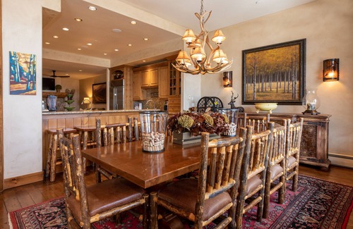 Other features include: wide-plank hickory floors that add warmth and charm throughout the living areas; 100 percent wool carpeting in the bedrooms; wood cabinetry and trim; hand hewn beams, private hot-tub, group steam room and and a master bath boasting a Jacuzzi tub and private steam room, separate Euro-style shower enclosure, custom-designed vanities with slab marble counter tops. With this rental each guest may obtain access to the private Ritz Carlton Spa and workout facilities for a complete vacation!