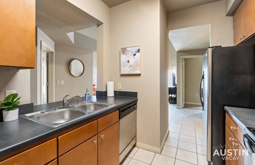 You'll relish the convenience of in-unit laundry and TWO complimentary parking spots in the garage. If more spaces are needed, nearby garages offer spots for around $20 per day. And for those looking to explore, you're perfectly poised! A stone's throw from the Drag, UT campus, and within a short stroll to Downtown and Zilker, your Austin adventure begins right at your doorstep. Please note, while we adore furry friends, pets are not permitted. Your Austin escapade deserves nothing short of extraordinary, and our residence is eager to deliver!