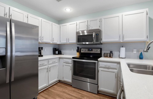 The master bedroom is fully furnished with a king-size bed, walk-in closet, a private bathroom with an updated tiled walk-in shower, and sliding door access to the covered deck. The second bedroom offers a queen bed while the third guest bedroom sleeps 4 with a queen-size bed and twin bunks. The updated guest bathroom has a tub/shower combo with custom tile surround and tile floor. There is no need to worry, the necessities are provided: including linens, towels, hand soaps, toilet tissue, paper towels, garbage bags, dish soap, and laundry detergent for the full size washer and dryer located within the unit.