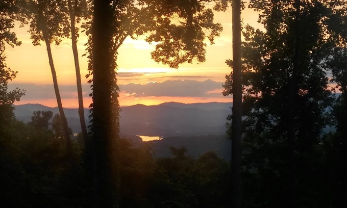 Beautiful cabin rental just 2 hours from Atlanta! Nestled on a ridge in the private community of Eagles View, this quiet, comfortable 3 bedroom/2 bath, one-level cabin has a Million Dollar View of Lake Chatuge and surrounding mountains! This beautiful cabin accommodates up to 6 people and is loaded with all the comforts of home. Relax on the tranquil outdoor deck or cozy up by the beautiful wood-burning fireplace. If you enjoy cooking, the updated gourmet kitchen is fully stocked with everything you'll need to whip up a delicious meal. The adventurous will love the countless outdoor activities nearby including hiking, biking, boating, zip-lining, and tubing. Numerous quaint mountain villages abound offering unique shopping and dining as well as many wineries along the way. Come experience the relaxation and beauty of the mountains any time of the year and make it a tradition!