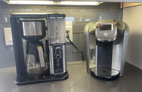 The fully equipped kitchen features a gas cook top with a new oven and microwave. A huge island provides plenty of prep space with room for your quality checkers to hang out nearby.