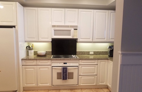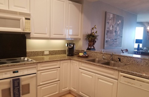 The condo has high end furnishings and décor with an upscale and well-appointed kitchen with granite counters. The beachfront master suite has a king bed with a luxurious master bath, a beautiful shower and jacuzzi jetted tub deck and twin vanities. This condo is the ultimate in luxury and comfort! Each morning you will awake to the sound of the surf, and can enjoy the view from the fabulous master bedroom, the living area, or expansive balcony overlooking the gulf! The guest bedroom has 2 full size (double) beds and a private bath, and there is also a sofa sleeper in the living room, allowing comfortable sleeping space for up to guests! The condo has 3 TVs including a smart 65" TV in the living room.