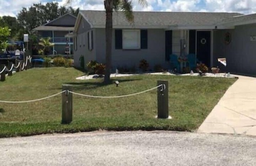 This amazing centrally located one level 2/1.5 remodeled/romantic cottage is tastefully decorated on a huge four-way intercoastal corner lot with 180° water views romantic or family getaway memories. This amazing centrally located one level 2/2 remodeled/romantic cottage is tastefully decorated on a huge four-way intercoastal corner lot with 180° water views romantic or family getaway memories begin here. Hudson Beach, sunsets, tiki bars, dining and Hudson ice cream parlor all within walking distance. Kayaks, paddle boards, canoe, bicycles, fishing rods, corn toss and all safety equipment. Plenty of outdoor games and what is a cottage without foosball. This cottage sits on a deep water main canal two blocks from the Gulf of Mexico. So you enjoy seeing Fishing boats, shrimp boats, and pleasure boats pass by the property in this no wake zone. Dolphins, manatees, birds, and schools of fish passed by this corner at any moment. There is plenty of parking for RVs, trailer, cars and personal autos. Your personal dock for fishing swimming and to keep those water toys of yours tied up.