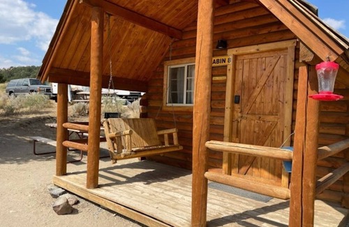 AMAZING views of the Collegiate Peaks and most secluded 1 Room Dry Camping Cabin. Sleeps up to 4 in one queen bed and a set of twin bunks (bunk bed linens provided upon request). Cabins have electricity and ceiling fans for the summer and heat in the winter. All sites include fire ring & picnic table. No plumbing, but 24 hr access to bathhouse(s). Only bed linens provided, no towels. Dogs are allowed for a one-time, non-refundable cleaning fee of $25 for up to two dogs in rented accommodations. No additional pets are allowed. This site category includes C1 and C10.