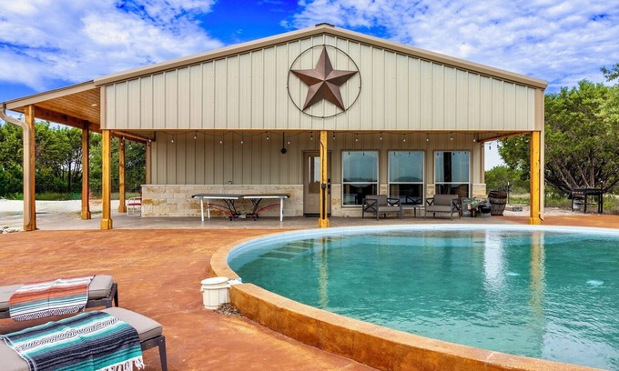 Get away from it all! High Point Ranch, a sprawling secluded working ranch boasts a beautiful 3 Bedroom & 2 Bathroom barndominium home with a large salt-water pool on over 100 acres of wildlife watching ranch land and can sleeps up to 12 guests. The ranch is located 40 miles northwest of Austin, It feels like you are a thousand miles away from the big city, yet with all that both Austin and the highland lakes hill country has to offer at your disposal. Situated on a family ranch in the Texas Hill Country with majestic views for up to 20 miles, this ranch home with a large saltwater pool is sure to please the most discriminating travelers. The seclusion and tranquility are only pierced by the occasional shriek from an eagle or hawk. Watching the deer & cattle bound between the hundreds of cedar and oak trees will deepen your appreciation for God's natural habitat. Let the big city stresses melt away and kick back! There is nothing better than the hill country night sky. We offer a telescope to check out the constellations or maybe a dip in the pool under the stars. There are many other things to do at the ranch as well such as hiking and swimming.