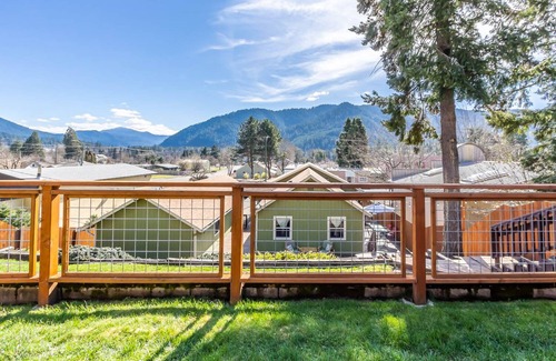 Welcome to Uptown Oakridge. Our place is perfect for mountain bikers or anyone looking to explore this outdoor wonderland. Our secured garage offers bike tools and plenty of space to store your gear. Muddy ride? Clean up at our bike wash or hang up your skis and snowboards after hitting the slopes of Willamette Pass. Finally, enjoy the view of the hills on the upper terrace after your day of adventure.