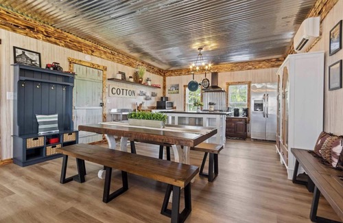 Americana Farm Getaway combines the comfort of The Prairie House Retreat and Liberty Lodge into one spacious, private booking—making it the ideal setting for family reunions, group getaways, or multi-family vacations. With room for up to 14 guests across two charming countryside homes, you’ll have everything you need for a peaceful and memorable stay.