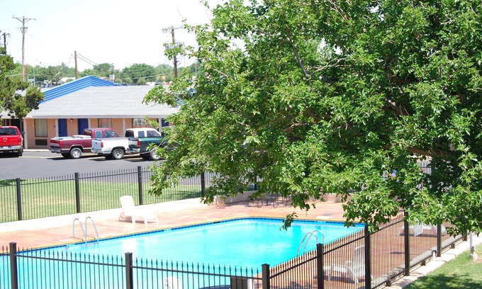 Recreational amenities at the motel include an outdoor pool and a fitness center.